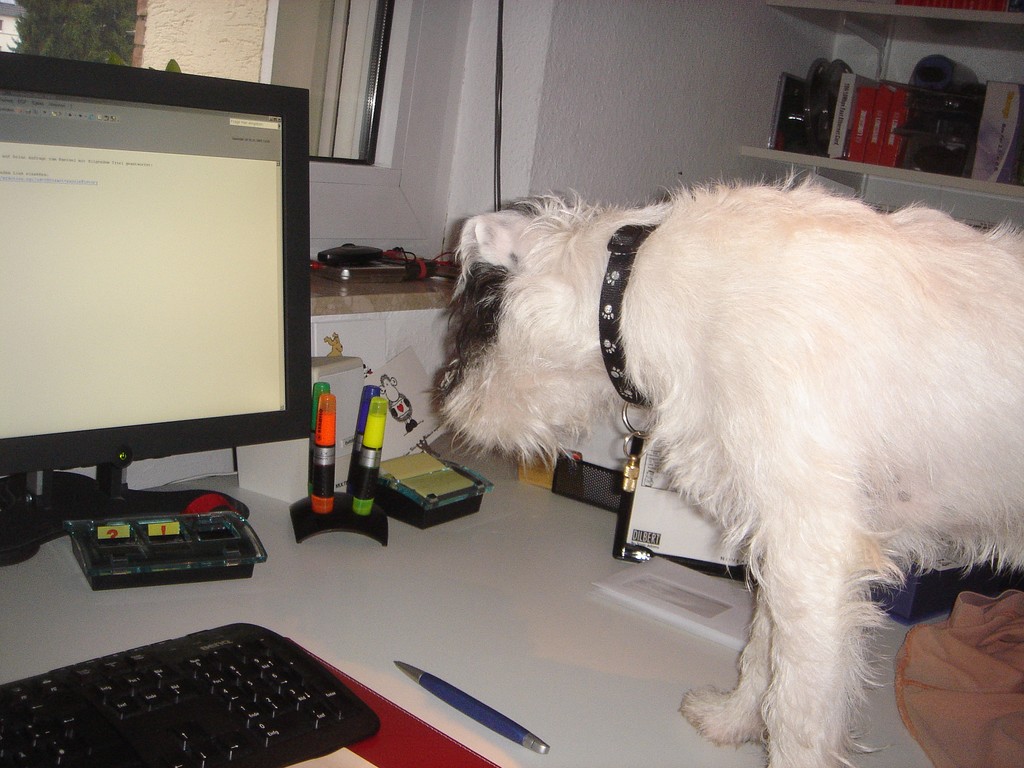 Neuer Ordner16.9. Sauwetter. Arbeiten bei 16° am offenen Fenster. Das Heizkissen liegt mittlerweile vor mir und legt ab und an seinen Popo auf die Tasten.